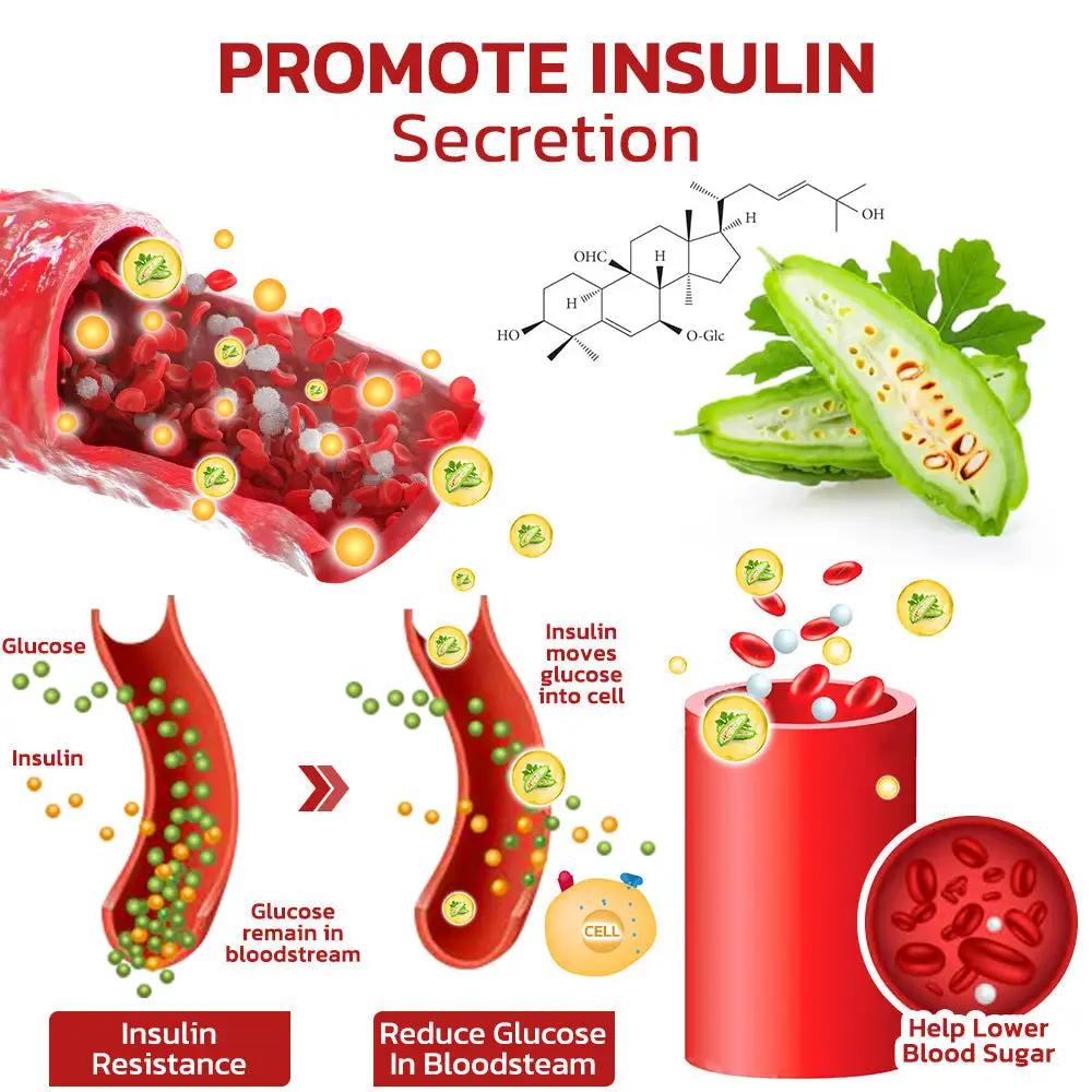 Bitter Melon – Bitter melon contains a compound known as bitter melon saponin, which is believed to have an insulin-like effect and can directly lower blood sugar. In addition, bitter melon saponins may also help regulate blood sugar levels by stimulating insulin secretion from the beta cells of the pancreas. This substance promotes insulin secretion and improves insulin sensitivity, allowing glucose to better enter cells and lower blood sugar levels.