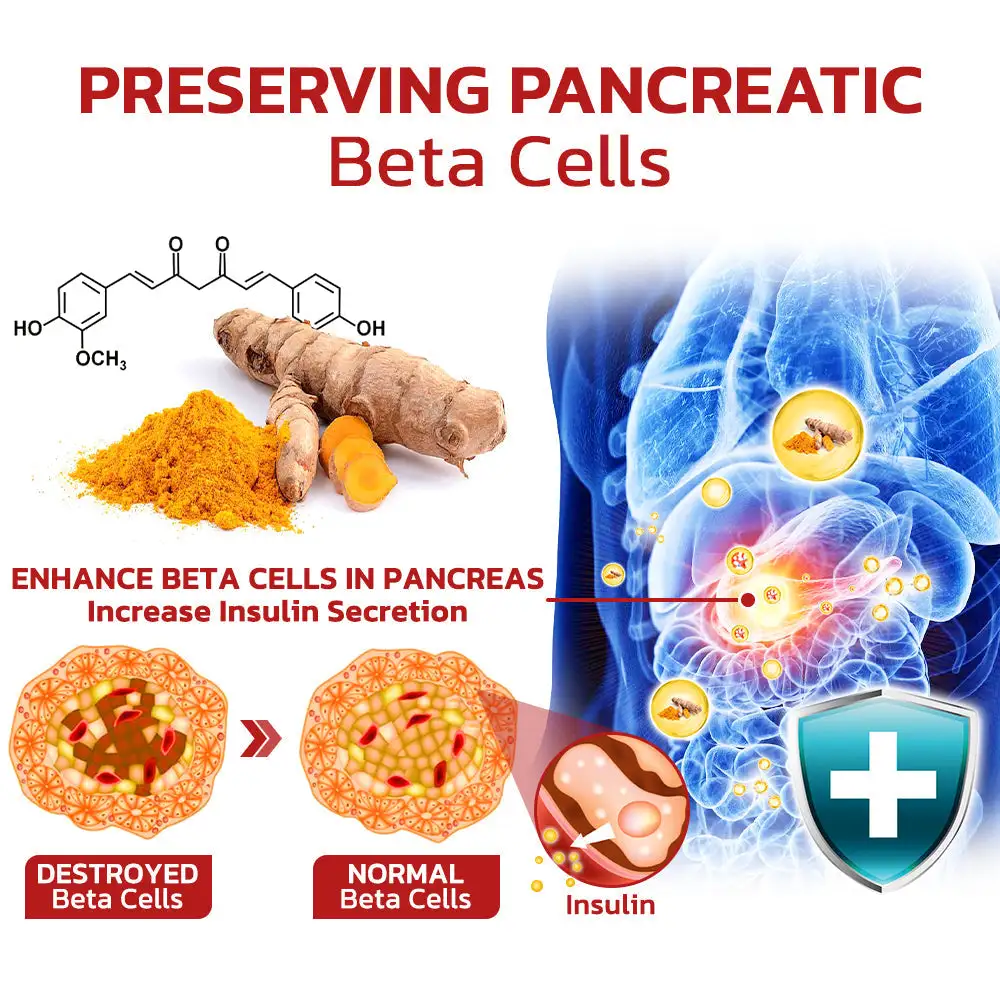 Curcumin – It has attracted attention for its potential to protect the beta cells of the pancreas, the key players in insulin production. It plays a protective role in maintaining the function of these cells, thus helping to maintain adequate insulin secretion and improve blood sugar control.